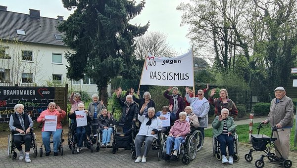 Anlässlich des bundesweiten Aktionstages gegen Rassismus und Fremdenfeindlichkeit treffen sich die Bewohner vor dem Heinrich-König Seniorenzentrum zu einer Fotoaktion.
