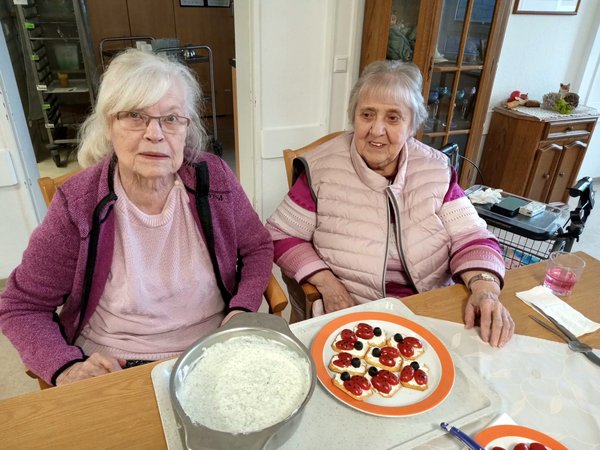 Am Freitag schnippelten die Bewohner gemeinsam Tomaten und bereiteten einen leckeren Snack mit selbstgemachtem Kräuterquark zu.
