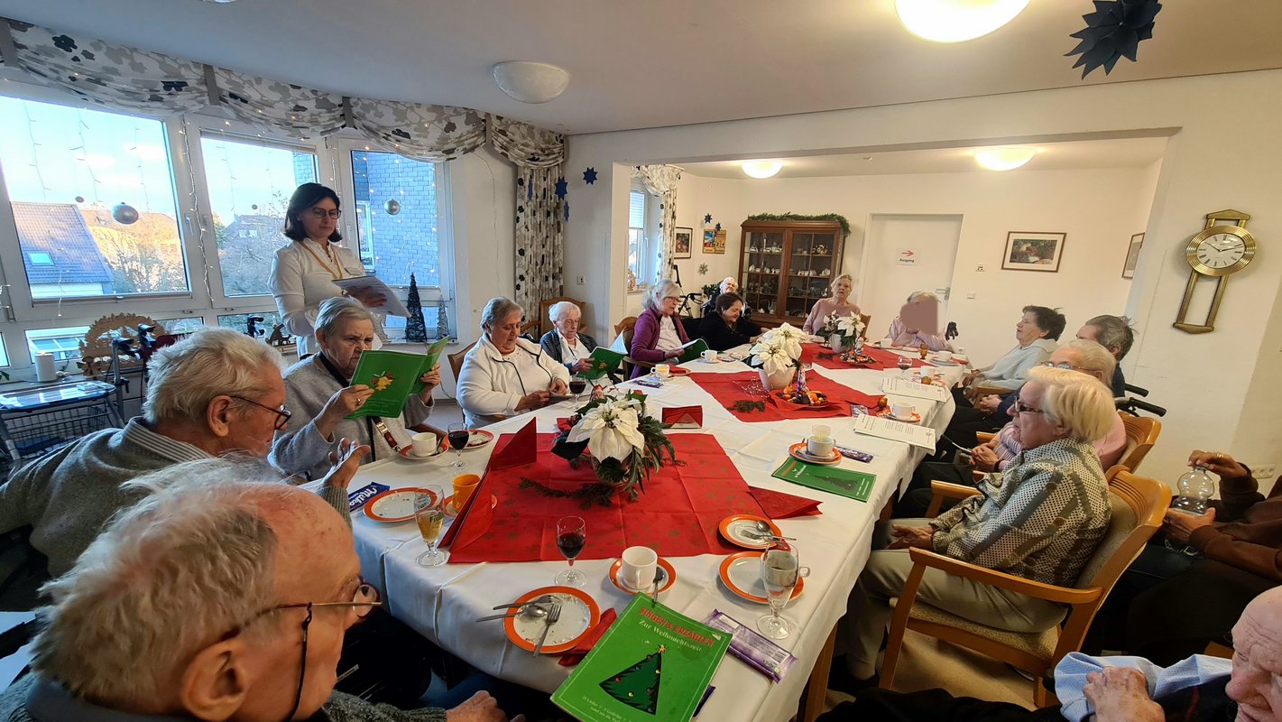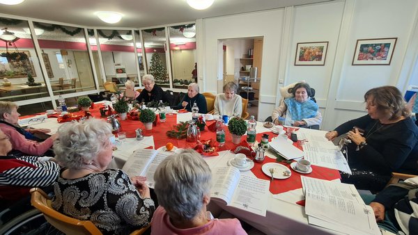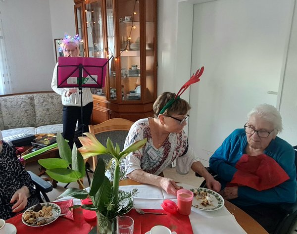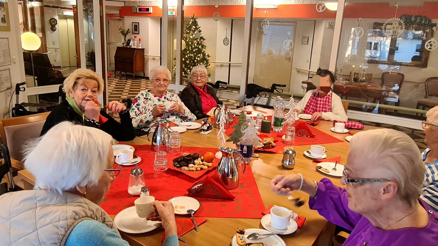 Am 24. Dezember feiern die Bewohner und Bewohnerinnen gemeinsam im Speisesaal - und zwar gleichzeitig auf allen Etagen.