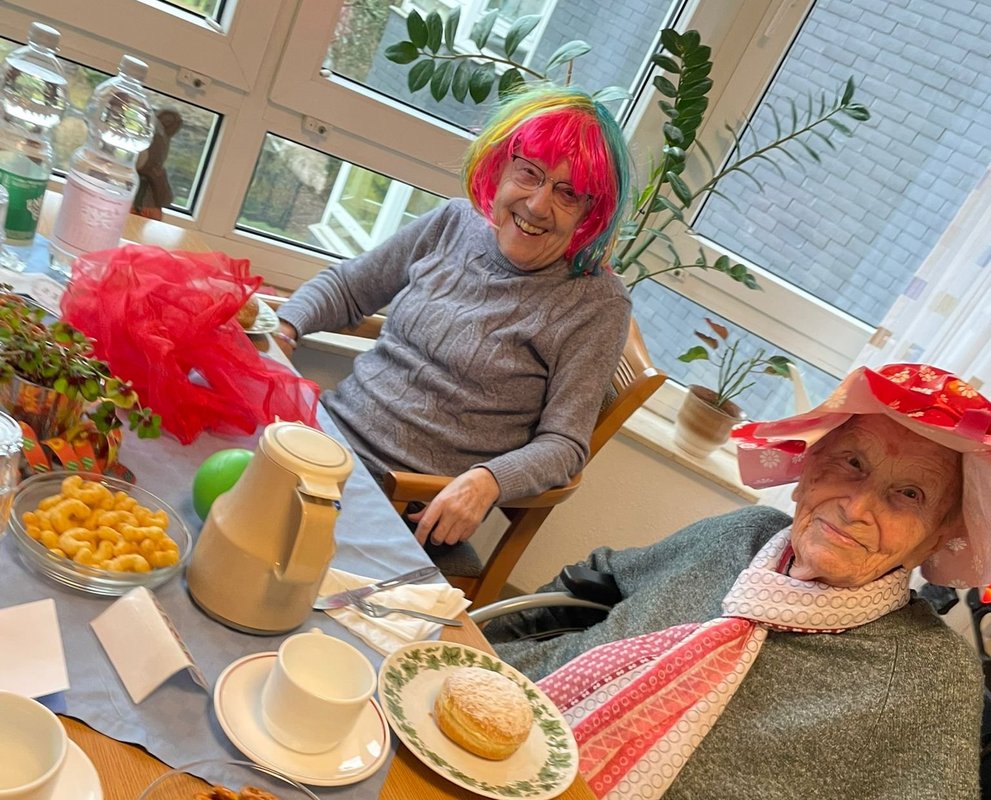Heute verlegten wir den Straßenkarneval lieber in unsere warmen Speisesäle und feierten ausgelassen, während es draußen regnete und stürmte. Die Bewohner amüsierten sich auf allen Wohnbereichen mit Musik, Tanz, Reden und allerlei Snacks und leckerer Getränke. Zum Kaffee gab es natürlich Berliner Ballen.
