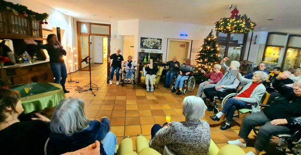 Am Donnerstag hießen unsere Bewohner und Bewohnerinnen das neue Jahr gebührend willkommen. Andrea Schröter sang Volkslieder, Schlager, Balladen und brachte nicht nur die Bewohner in Stimmung. Bei Sekt oder Orangensaft wurde geschunkelt und mitgesungen. Die Tanzfläche füllte sich schnell und es wurde ausgelassen gefeiert.